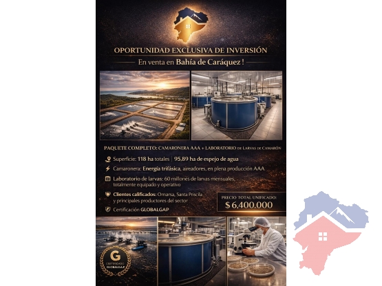 CAMARONERA TRIPLE AAA EN VENTA, 118 Ha - Bahía de Caráquez